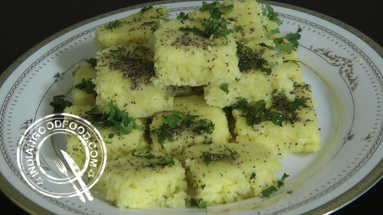 - minutes are over, remove the lid. Insert a knife into the dhokla, it came out clean that means dhokla has steamed aptly. Turn off the flame and let the dhokla cool down slightly.