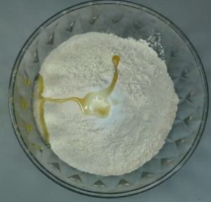 - Mix 2 cups of wheat flour, ½ tsp of salt, 1 tsp of oil in a bowl.