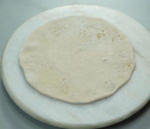 - Take-out a dough portion, dust in dry flour, and roll out a small sheet of 3-4 inches in diameter.